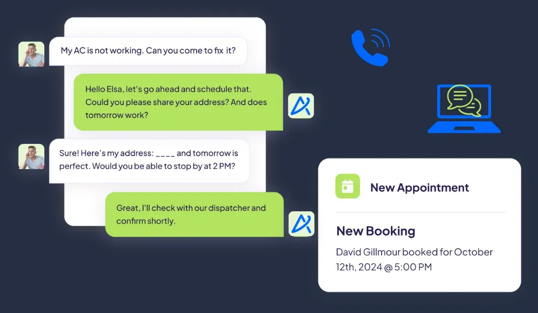 It would take 4.2 human receptionists to provide the same level of support that our AI voice solution can provide at a fraction of the cost. Our virtual receptionist service and AI answering technology never sleep, delivering consistent customer service automation around the clock. With conversational AI voice bots handling calls and AI chatbots managing online inquiries, your business benefits from complete contact center automation without the expense of traditional phone call answering services or multiple after-hours answering service staff.
